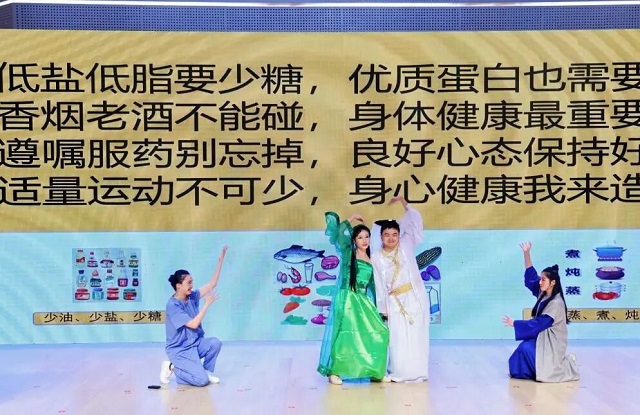 中醫(yī)養(yǎng)生操“八段錦”現(xiàn)場教學(xué);科普小品《白娘子的心臟危機》以生動有趣的形式傳遞健康知識,贏得現(xiàn)場陣陣掌聲……