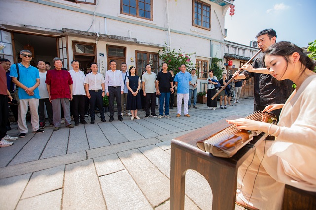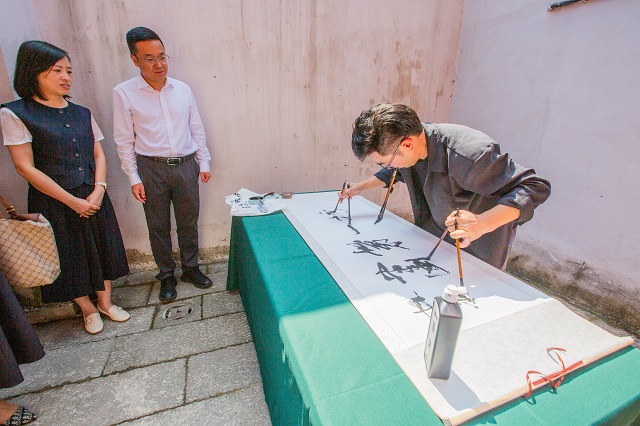 活動現(xiàn)場,悠揚古琴聲緩緩流淌,拉開文化盛宴的帷幕。隨后,中國當代著名書法家葉根友現(xiàn)場揮毫潑墨,以筆墨丹青展現(xiàn)甌越書畫魅力,展露書畫藝術(shù)在基層沃土扎根生長之姿。