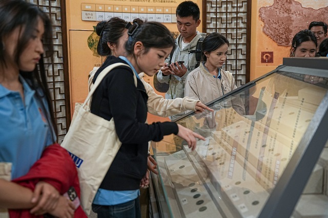 隨后,大家走進逸夫計量博物館,開啟“觸摸計量歷史、感受科技力量”之旅。從商代骨尺到近代天平,再到現(xiàn)代精密儀器,大家在展品與講解中讀懂計量文明脈絡(luò)!霸瓉碛嬃吭诠糯秃娃r(nóng)業(yè)、貿(mào)易息息相關(guān)!”阿克蘇學(xué)子熱依拉·克孜駐足漢代銅權(quán)前,仔細聆聽其重量標準器的歷史。在現(xiàn)代計量展區(qū),直觀感受計量在國防科技領(lǐng)域的實際應(yīng)用。量大學(xué)子徐佳欣還主動當(dāng)起“輔助講解員”,為阿克蘇伙伴科普計量知識:“小到一根針,大到航天工程,都離不開精準計量。”