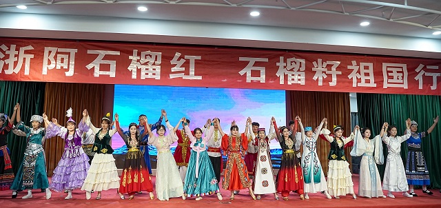 當(dāng)天,“浙阿石榴紅?石榴籽祖國行”交流活動在中國計量大學(xué)舉行,兩地青年以特色互動促進文化交流,讓民族團結(jié)之花綻滿校園;顒右潦,青春分享會成為浙阿青年學(xué)子深度交流的重要平臺,現(xiàn)場播放的阿克蘇地域文化宣傳片,讓量大學(xué)子直觀領(lǐng)略了當(dāng)?shù)氐娘L(fēng)土人情;兩地青年代表則圍繞精神傳承、青春奮斗等主題,分享成長故事、傳遞理想信念。從阿克蘇的發(fā)展變遷到校園里的奮斗點滴,真摯的講述引發(fā)強烈情感共鳴,不僅實現(xiàn)了語言的交流,更搭建起跨越地域的心靈紐帶,讓交往交流交融的種子在青春對話中悄然發(fā)芽。