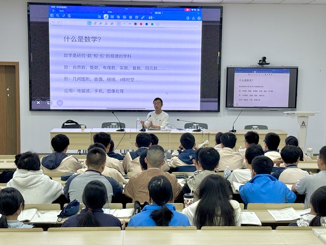 講座中,王楓從“什么是數(shù)學(xué)”這一問題切入,引導(dǎo)同學(xué)們思考數(shù)學(xué)的本質(zhì)。結(jié)合數(shù)學(xué)思維的特點,向大家展示了數(shù)學(xué)作為一門精確語言的獨特魅力,他強調(diào),解決問題的核心在于理解問題、提出解決方案、陳述解答三個關(guān)鍵環(huán)節(jié)。通過初等數(shù)論中的舉例分析,將抽象的數(shù)學(xué)概念與生動的“形”相結(jié)合,使同學(xué)們直觀感受到了數(shù)學(xué)的嚴謹與奧妙。此外,王教授還分享了關(guān)于數(shù)學(xué)競賽的知識,通過具體案例向?qū)W生們展示了數(shù)學(xué)問題的多樣性和挑戰(zhàn)性,他鼓勵大家在學(xué)習(xí)中保持好奇心和探索精神,不斷提升自己的數(shù)學(xué)思維能力。整場講座,王教授用深厚的學(xué)術(shù)功底和生動的案例,層層剖析數(shù)學(xué)思維的本質(zhì),師生們紛紛表示受益匪淺。