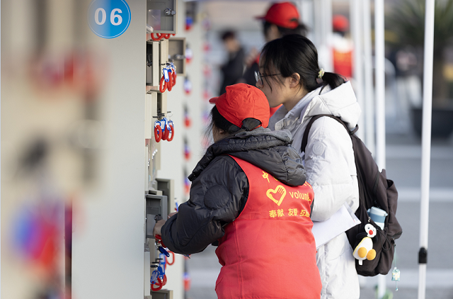 學(xué)校精心布設(shè)暖心服務(wù)點(diǎn)、志愿者咨詢臺(tái)及應(yīng)急綠色通道,全方位為考生保駕護(hù)航。考場(chǎng)外清晰醒目的指引標(biāo)識(shí)一目了然,志愿者與研究生會(huì)干部主動(dòng)為考生提供咨詢引導(dǎo)服務(wù),并協(xié)助考生將手機(jī)等隨身物品統(tǒng)一存放至指定區(qū)域!皬乃⒛樳^(guò)安檢開(kāi)始,就有志愿者微笑著對(duì)我說(shuō)‘加油’,老師們也不斷給予我鼓勵(lì),一路上都有工作人員耐心指引!敝袊(guó)計(jì)量大學(xué)考生王雅玲說(shuō),這些小小的善意,給了她很大的鼓勵(lì)。