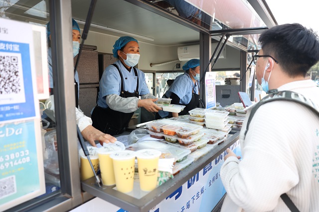 為方便考生用餐,學(xué)校在正門口、教學(xué)樓下等3處位置設(shè)置移動(dòng)餐車、餐點(diǎn),開(kāi)放教授長(zhǎng)廊、部分教室和餐廳作為用餐及午休區(qū),休息區(qū)內(nèi)環(huán)境安靜整潔,充足飲用水、常用藥品箱、考試應(yīng)急箱等物資一應(yīng)俱全,全力保障考生的休憩需求。從大連理工大學(xué)遠(yuǎn)道而來(lái)的考生陳韻鈺對(duì)餐車服務(wù)印象深刻,她說(shuō):“沒(méi)想到一出考場(chǎng)就能吃上香噴噴的飯菜,很方便,不用冒著寒風(fēng)找地方就餐,真心感覺(jué)被暖到了!