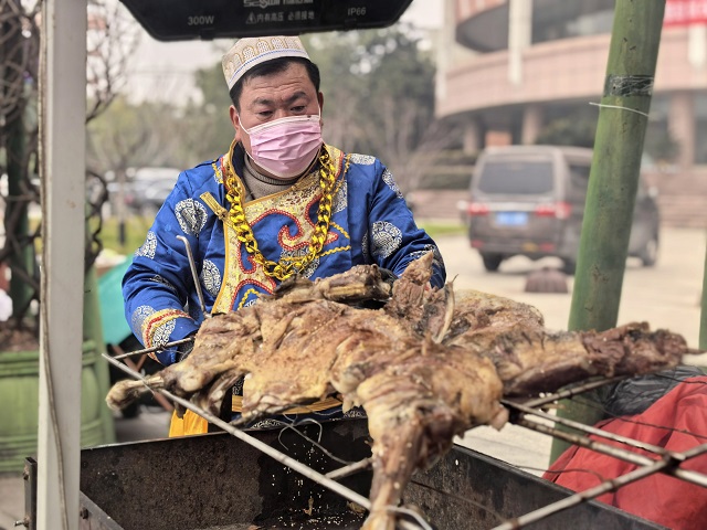 走進(jìn)市集,濃郁年味撲面而來。奶皮子糖葫蘆、潮汕牛肉丸、長(zhǎng)沙臭豆腐、烤全羊等20余種現(xiàn)制各地美食和14個(gè)特色檔口,吸引不少師生駐足品嘗,師生們邊逛邊吃,一站式打卡各地美味!斑@是我們家鄉(xiāng)的泡蝦,味道特別贊!你們也嘗嘗!眮碜耘_(tái)州的王意霞向朋友推薦起了家鄉(xiāng)美食。
