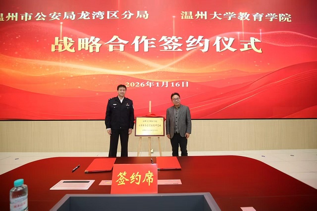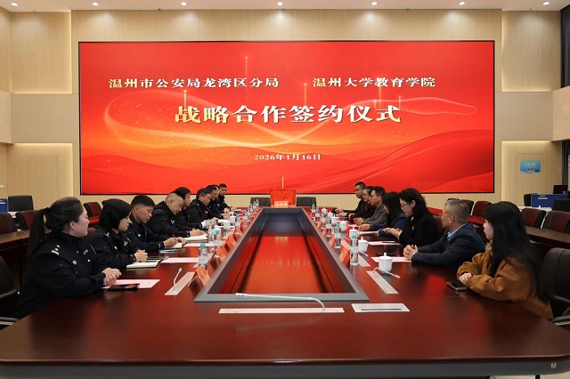 1月16日,溫州大學(xué)教育學(xué)院與溫州市公安局龍灣區(qū)分局戰(zhàn)略合作框架協(xié)議簽約儀式在龍灣區(qū)公安分局舉行。