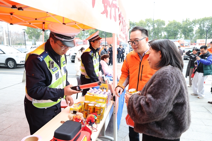 2月10日,在杭州繞城高速西湖服務(wù)區(qū)內(nèi),一場(chǎng)“春節(jié)風(fēng)險(xiǎn)減量公益行動(dòng)”正如火如荼開展。