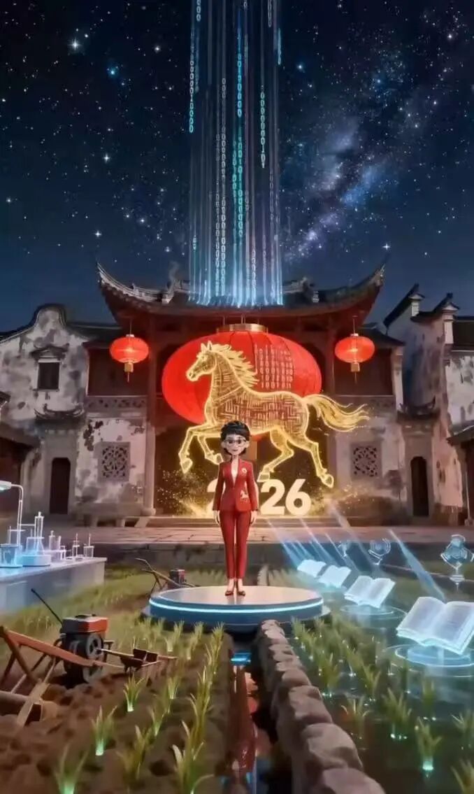 剛剛過去的農(nóng)歷新年,一場“數(shù)字人賀新春”活動在“甬鄉(xiāng)校韻”視頻號和抖音號火熱展開。鏡頭里,不再是傳統(tǒng)單一的拜年背景板,而是由AI生成的虛實(shí)融合場景:奉化滕頭村的生態(tài)美景與未來實(shí)驗(yàn)室同框,象山旭拱岙村的曬鹽場與數(shù)字粒子流交織……十余位村書記的“數(shù)字分身”首次亮相,向全網(wǎng)推介家鄉(xiāng)的楊梅、青瓷、古村落與濱海風(fēng)情。這背后,是科技特派員團(tuán)隊(duì)對鄉(xiāng)村文化基因的數(shù)字化解碼,實(shí)現(xiàn)了“村村有IP,人人可代言”。