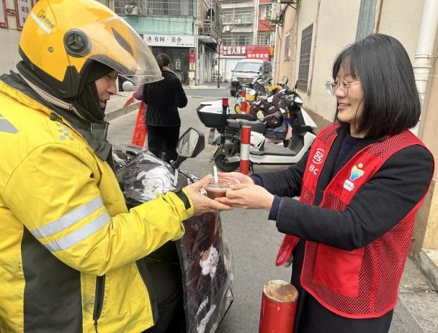 各網點精心熬制了暖心的臘八粥,軟糯香甜的粥品承載著傳統(tǒng)節(jié)日的底蘊。驛站志愿者將一碗碗熱粥送到辦理業(yè)務的客戶、周邊居民與商戶手中,更專程送到環(huán)衛(wèi)工人、外賣員等一線戶外工作者身邊,用實際行動讓每一位群眾在寒冬中感受濃濃的暖意與節(jié)日祝福。